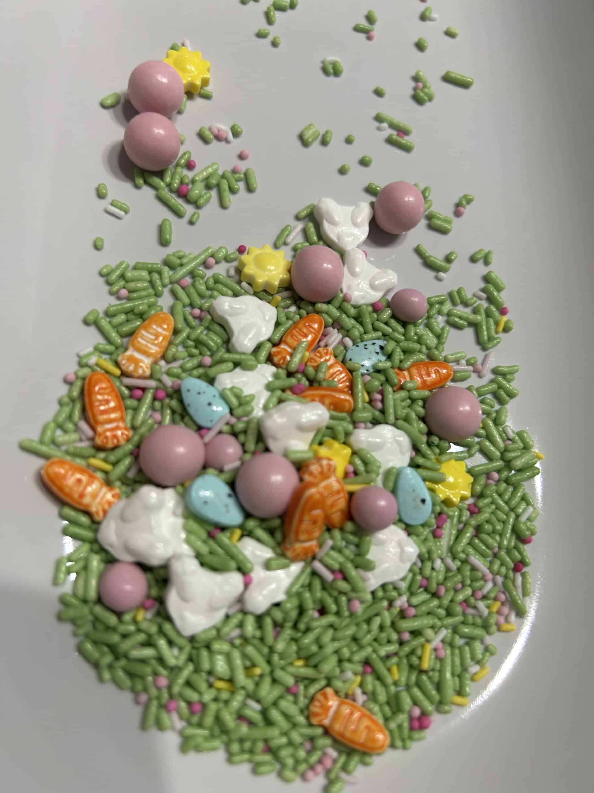 25 g Tavaszi Dekorcukor Mix – apró répák 🥕, hófehér nyuszik 🐇 és színes szórócukrok minden mennyiségben